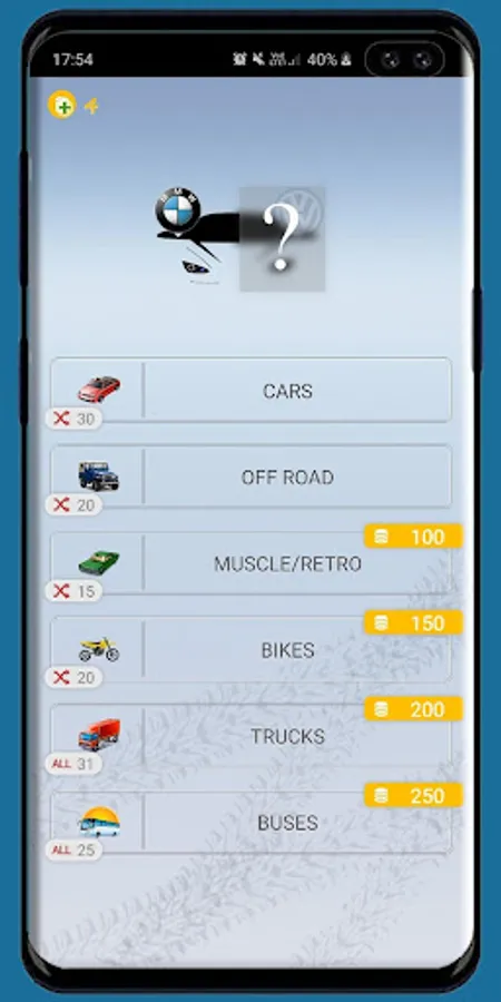 “Guess the car” app has multiple types of vehicles, there are : cars, trucks, bikes, buses, off road cars and muscle cars. The app contains many different makes and models, You can find there Bentley Continental and even ZIL truck. There are makes like Mercedes-Benz, BMW, Audi, Porsche, Peugeot, Citroen, Honda, Hyundai, Jeep, Cadillac, Bentley and others.