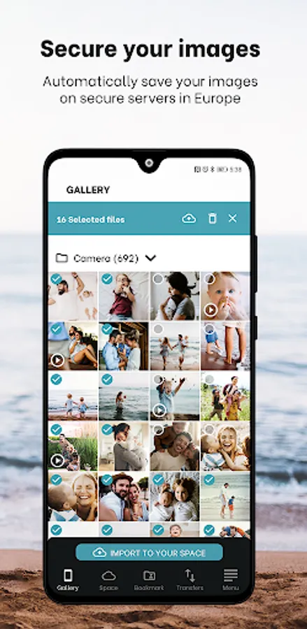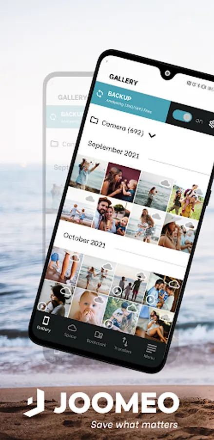 With Joomeo's mobile app, you'll have no more space issues on your phone or tablet! Once synchronisation is completed in your Joomeo space, simply delete the files to make space on your device and you're all set! You can start taking as many photos and videos as you like again, with total peace of mind.