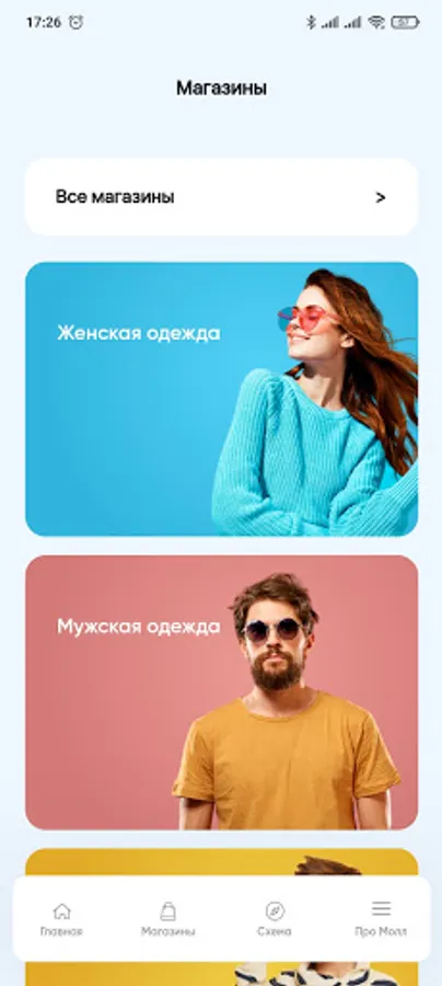 Under one roof of the space there are: PRISMA supermarket, L'Etoile store, Mirage Cinema cinema, Detsky Mir department store, Eldorado store, Lug gallery of Russian designers, Mango store, Good place and Fork family restaurant, Gloria Jeans clothing store, and more 130 stores of clothing and footwear, goods for children, electronics, accessories, cosmetics, all the necessary services for comfortable shopping for the whole family.
