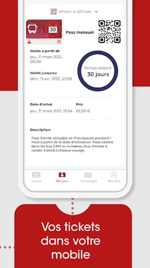 Monapass is an application that facilitate your access to the transport, touristic and cultural services in the Principality of Monaco! It offers you a unified access to buy and use your tickets and subscriptions without having to move. You can also add your other tickets or documents that you obtained outside of Monapass.