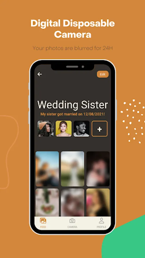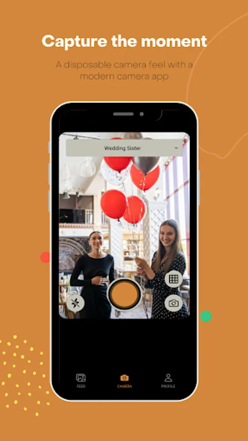 HappShot won’t immediately show you a preview of your photo. You shoot your photo and it will be stored. The result of the photo is not accessible until after the event. By doing this we bring back the spontaneity in the photo. Instead of faked perfection, we provide you with authenticity.