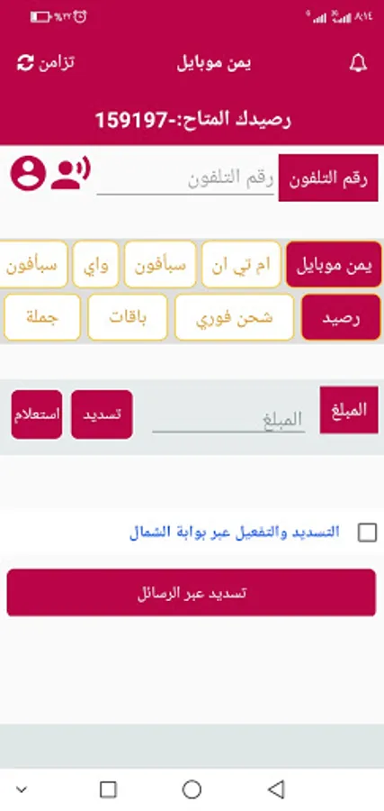 It is a system to facilitate the interaction between us and the customer to provide balance payment services and packages, according to the official prices of Yemen Mobile, so that the customer’s account is documented in which all his accounting operations are documented, and he does not need to review us or inquire about accounts. 1- The subscriber must create a new account by himself and fill in his data as required . 2- Any subscriber must pay a security amount in advance, by attending directly or transferring to one of our accounts shown in the program under the list (Transfer Information) and communicating with us via the numbers and addresses shown below to add the amount to his account because bank notifications do not contain customer information 3- The amount of the insurance must be sufficient to cover the operations of the client and each client according to his daily work, in order to avoid the process of accounting restriction on a daily basis. It is also preferable that the amount be deposited before the previous amount runs out so that the client does not stop working in case we delay adding the insurance amount on time. 4- Confirming the customer’s account for the application from the account confirmation list, copying the device’s password and sending it to us via our numbers, in order to be able to pay the direct services. The administration implements any operation within a period not exceeding a minute in the manual section, while the automated section does not exceed 5 seconds as a maximum, unless There is a problem in the system. 5- The customer is responsible for the data or the process he sends in terms of any error in the phone number or the type of package. 6- The customer bears the responsibility for the validity of the card data for the customers who are dealing with them to link new numbers or replace lost programming devices by receiving a copy of the card from the same person and matching it and adhering to the official prices of the company. 7- The working hours in the manual department are from (8 am to 11 pm) except Friday from (7 am to 10 am) as for the automatic section around the clock 8. 9- Notifications of operations are available first-hand, as well as the account summary through the application. 10- The customer can view the details of his reports and accounts when entering directly through the site with the same user name and password for the application. 11- Any amounts paid in error by the company, especially package operations, shall not be returned.