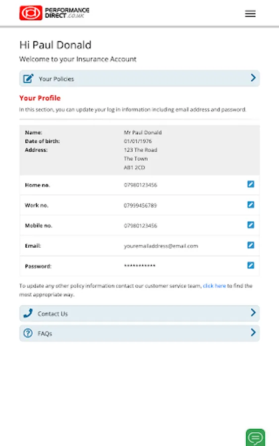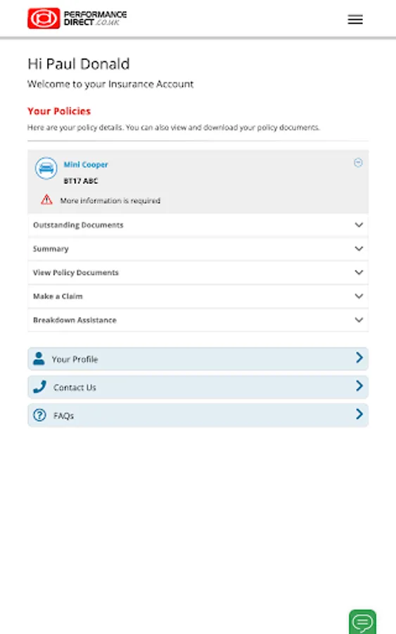 If you have a policy with Performance Direct this app will provide secure access to view your current insurance policies. Once you are logged in you will be able to find out how to make a claim, make changes to your personal information, download your documents and contact us via livechat.