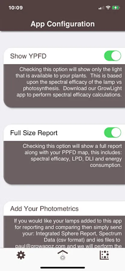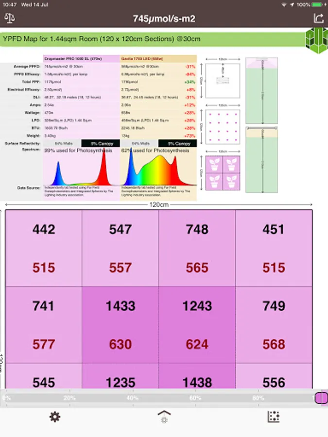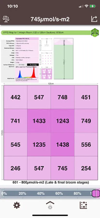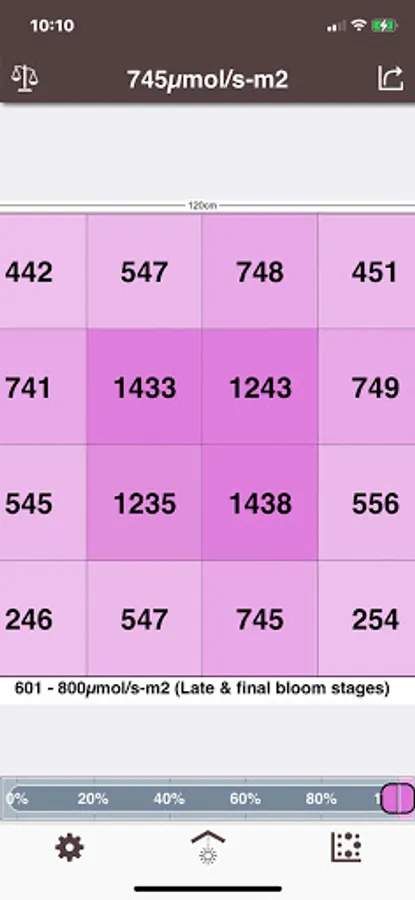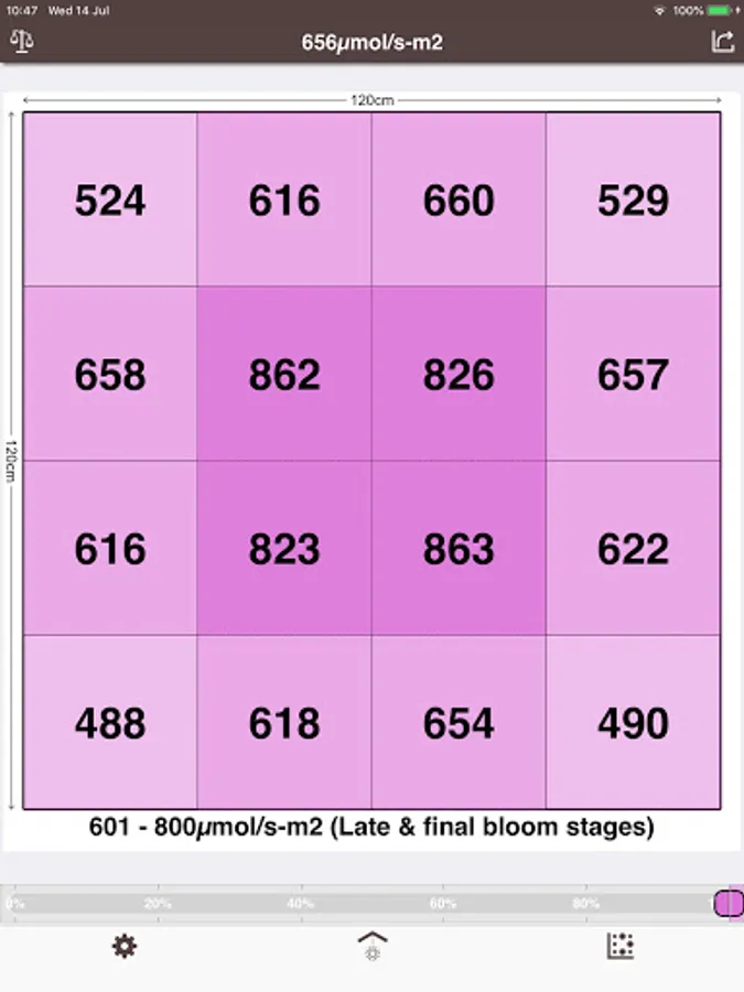 You can use this app to accurately plan the different phases of your grow using the slider in conjunction with the lamps power level to allow for exactly the right amount of light in your area for your current grow period.