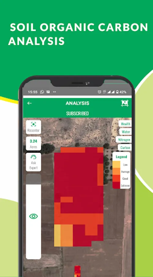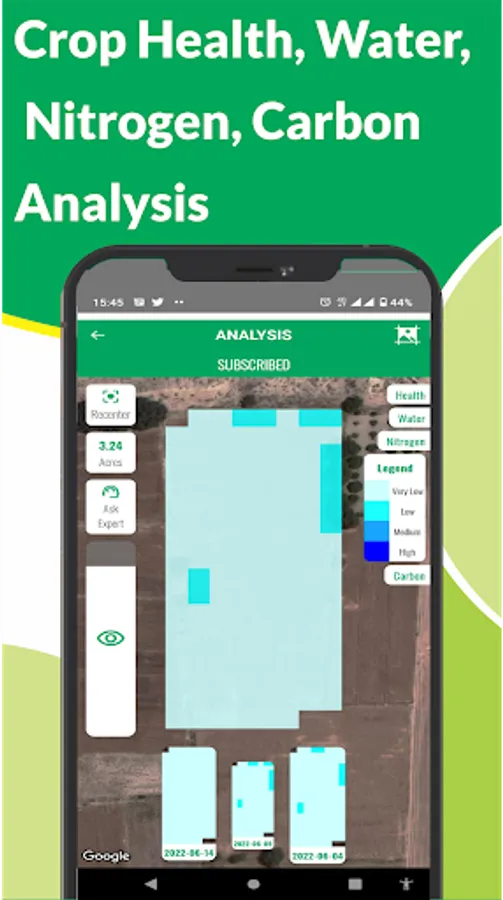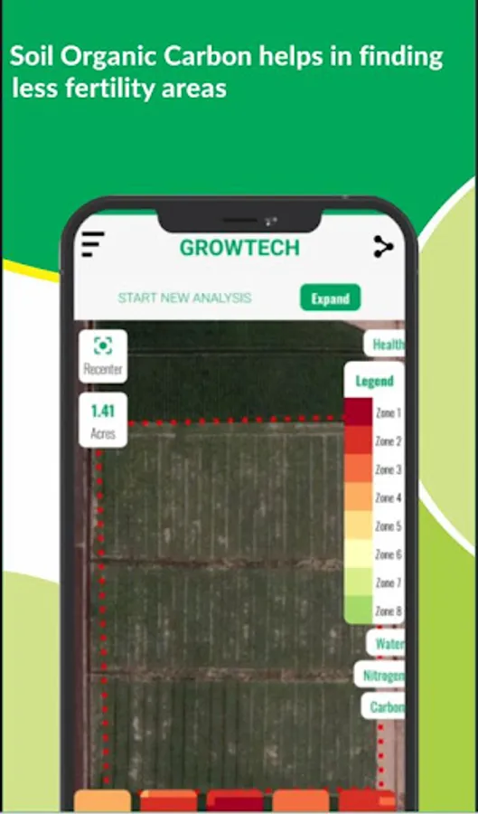 Our satellite based analytics and reporting helps you determine the SOC and Nitrogen in your soil and create management zones to optimally apply inputs with the right fertilizer blend, identify problematic farm areas, create crop growth-based zones and suggest irrigation requirement to save investment, increase production and profit margins.