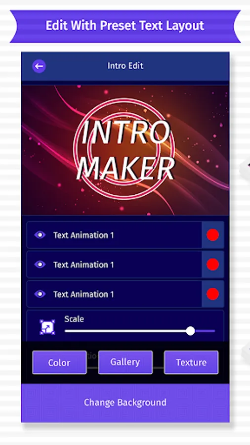 In Intro Video Maker - Animation there are so many custom Text Animations and Backgrounds created professionally just for this app and you can customize it as per your need.