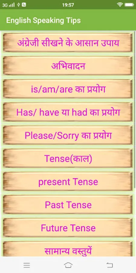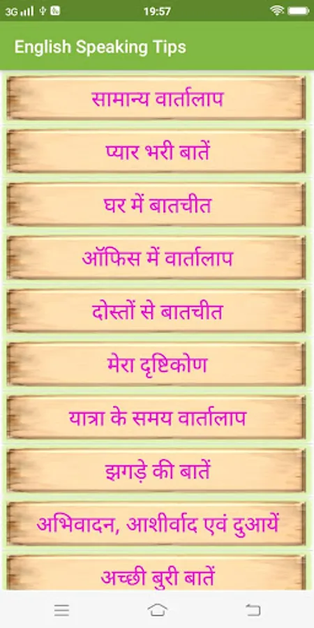 This app also contains examples of daily usable sentences in hindi and English for your English speaking practice.