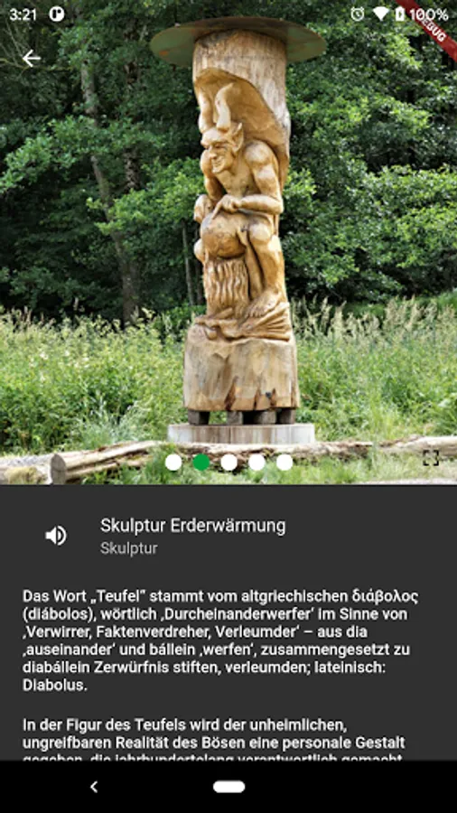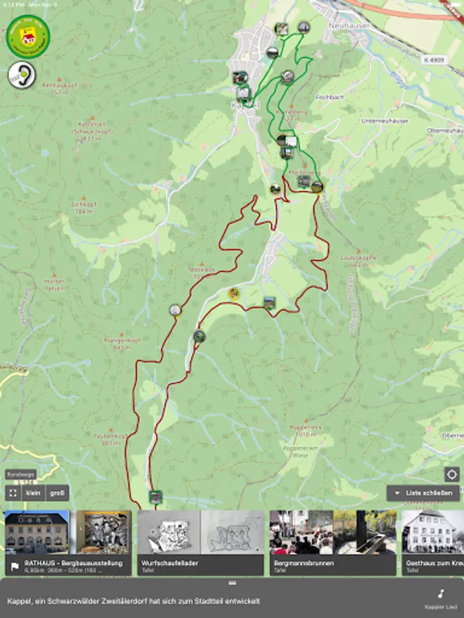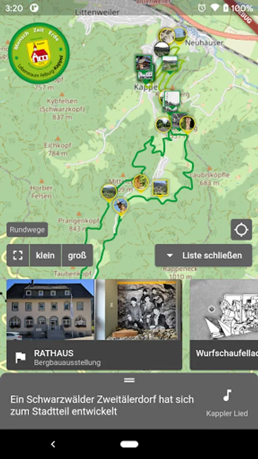 The BIOS Kappler Tal app accompanies you through the themed trail. It includes an interactive map that shows the two circular routes and their various stations, thus enabling independent navigation through the area. The information and pictures on the information boards and the related stories can be accessed via the app. The soundscapes with sound samples as well as additional information and images are also stored in the app. The app also provides background images, text and sound for the seven sculptures.
