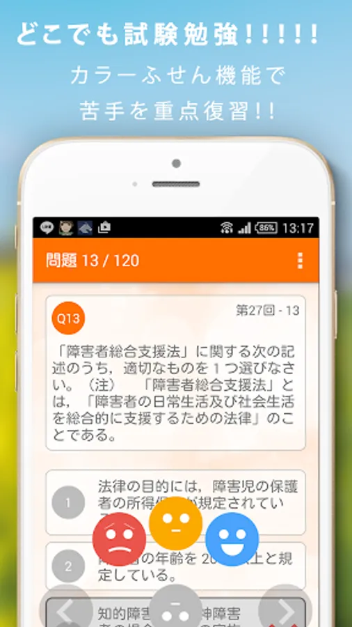 Care worker's memorization card + past problem collection with complete commentary! You can create your own set of questions according to the event, field, and problems you are not good at, so you can thoroughly study important items. 2021 (34th), 2020 (33rd), 2019 (32nd), 2018 (31st), 2017 (30th), 2016 ( 29th), 2015 (28th), 2014 (27th), 2013 (26th), and 2013 (24th)! You can use colored sticky notes for review and only solve problems with many mistakes, so you can study efficiently anytime, anywhere in your spare time. The score function is also substantial, and the answer rate, correct answer rate, and area are analyzed.