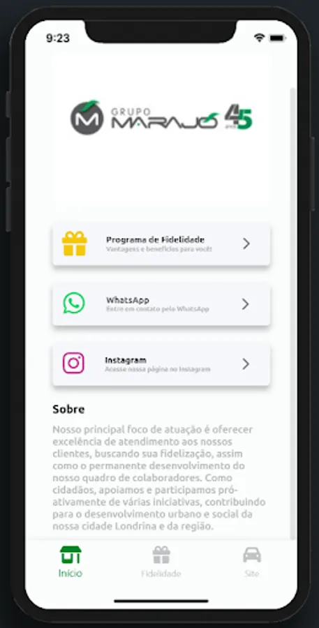 Application of the Loyalty Program of Grupo Marajó produced by Fidelimax, our main focus of action is to offer excellence in service to our customers, seeking their loyalty, as well as the permanent development of our staff. As citizens, we support and proactively participate in various initiatives, contributing to the urban and social development of our city of Londrina and the region.