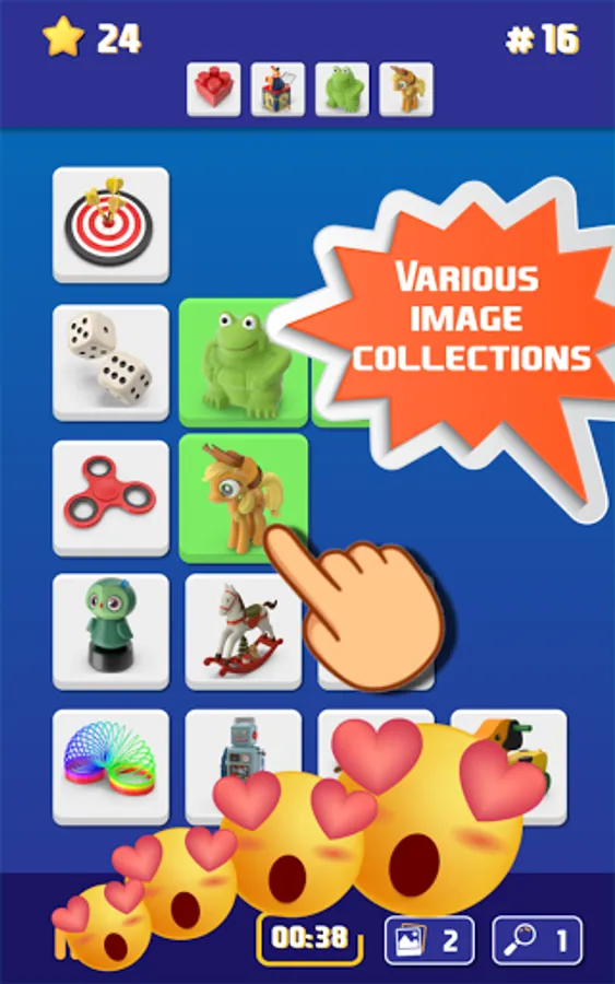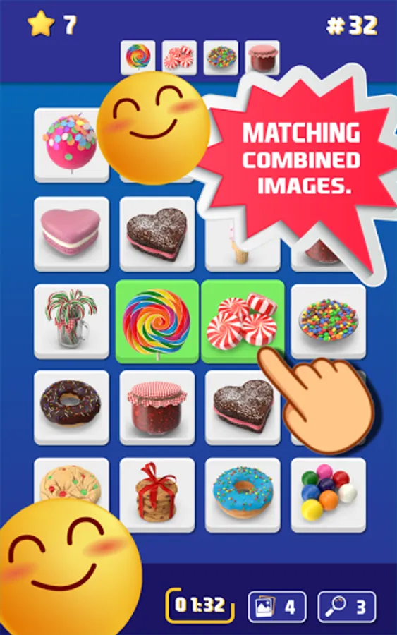 FİND SET is the most colorful and sparkling game among the FREE MEMORY GAMES, especially the ones that have PAIR MATCHING game mechanics. It can also serve as an ATTENTION TEST. Everyone of all ages can enjoy MATCHING combined images.