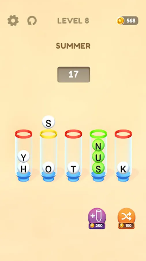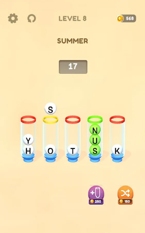 You must put the scattered letters in the bottles in the right order to form words.