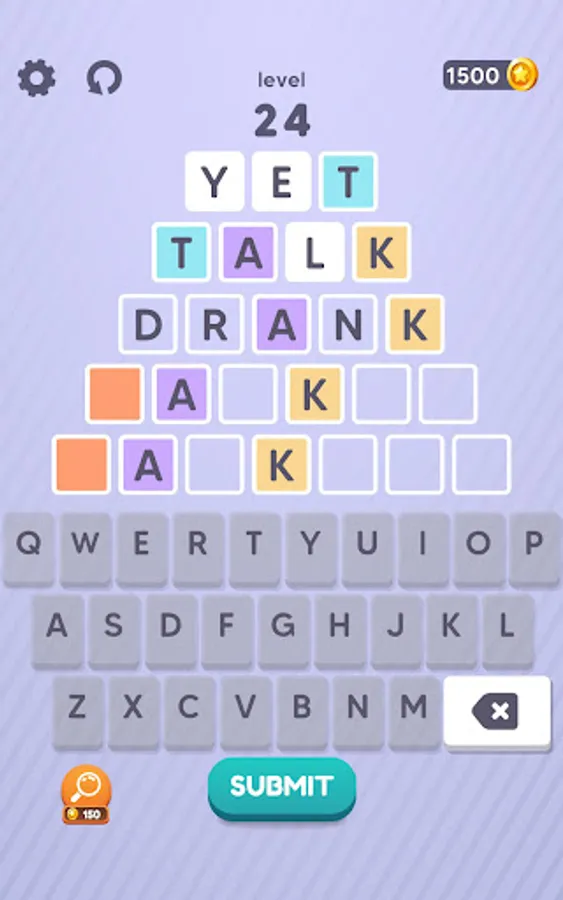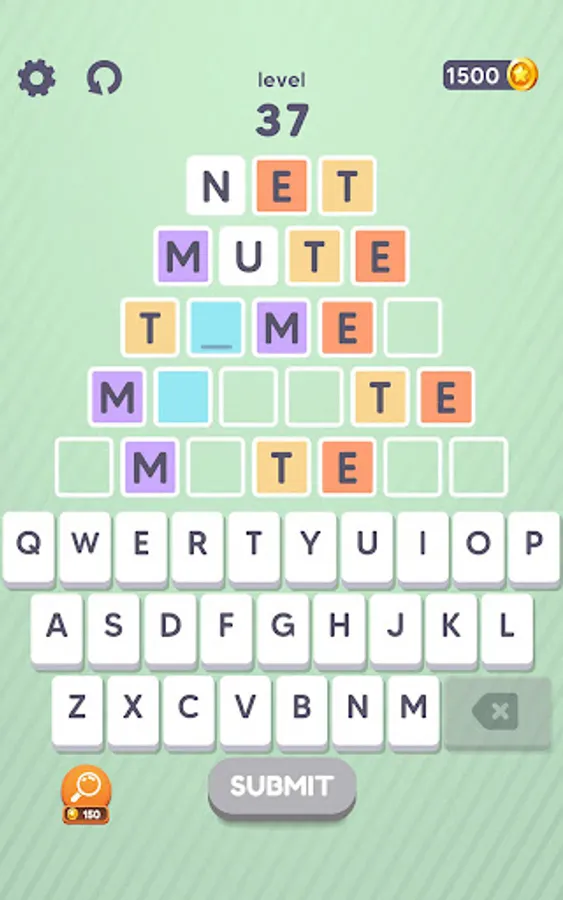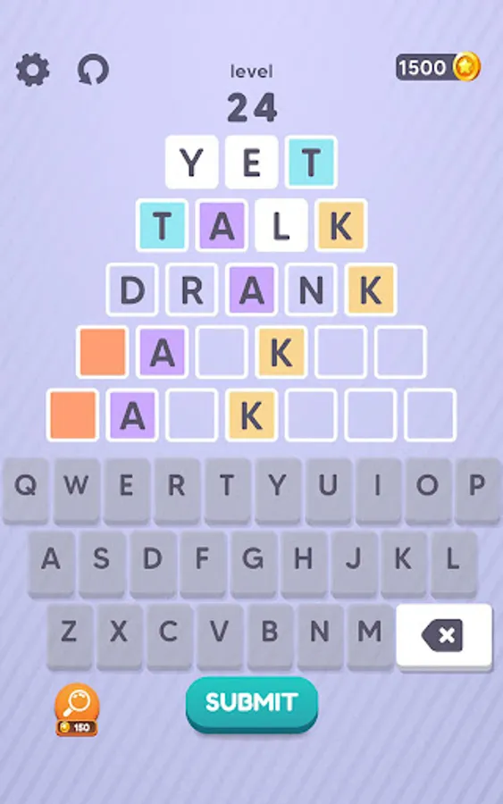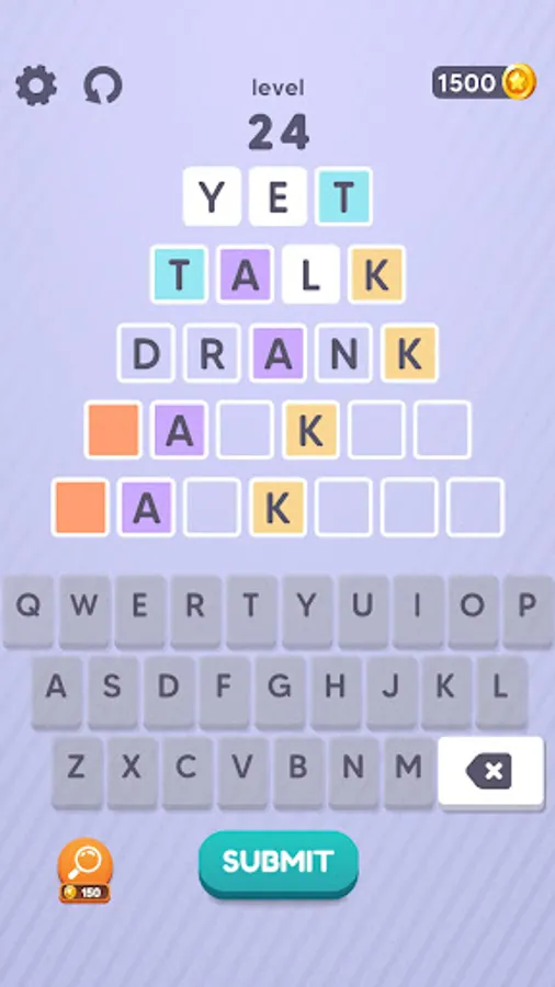 You have to write a valid word on each line from top to bottom. However, some letters of the words you wrote before determining the words you will write on the next lines. For this reason, you should write your first word, thinking up to the last word.