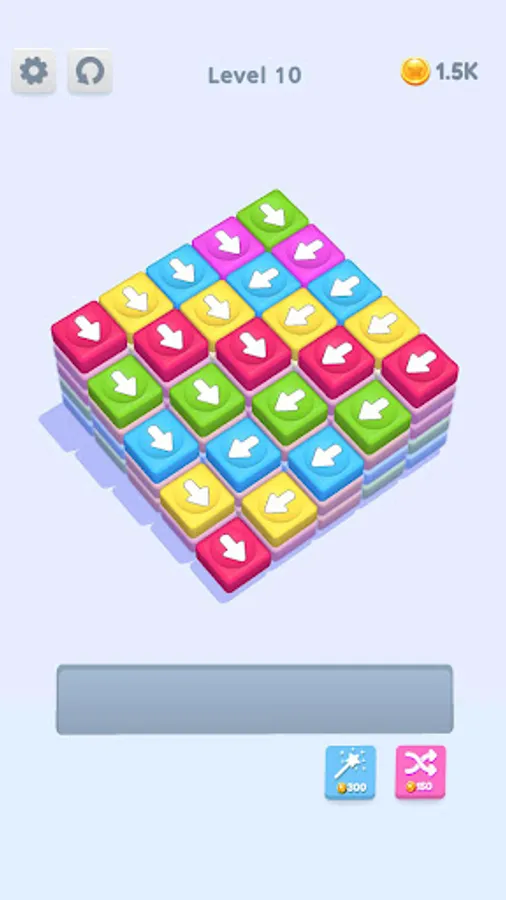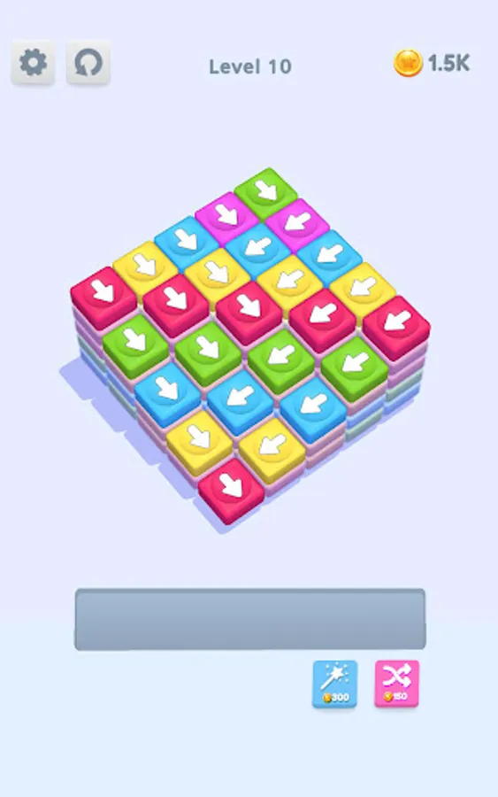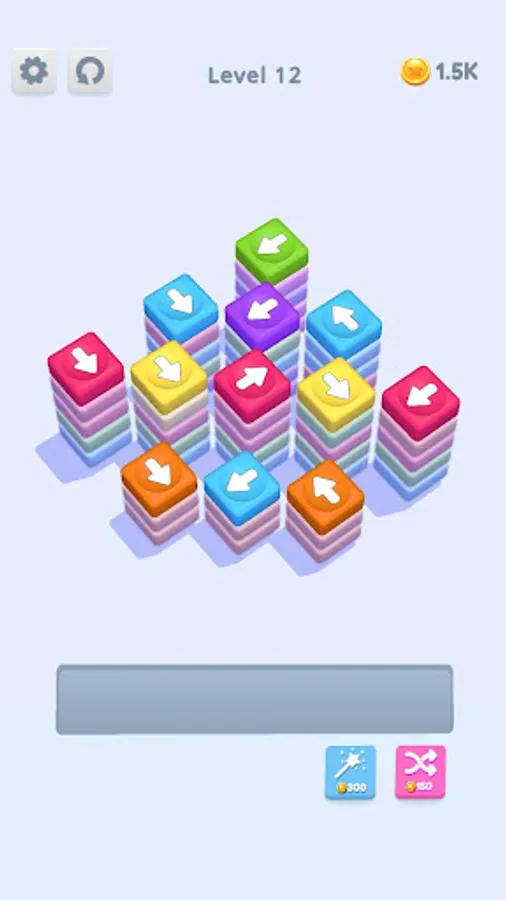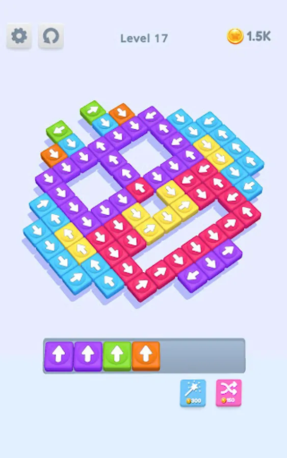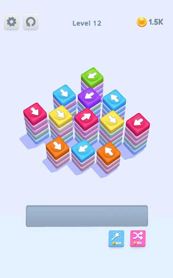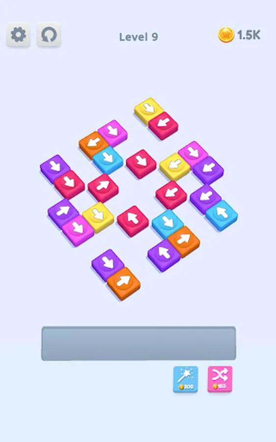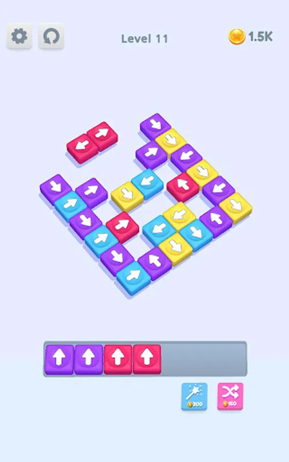 We only have a few rules. The tiles move in the direction of the arrow on them and enter the destruction area. If you have three tiles of the same color in the destruction area, you can destroy them. In addition, there should be no obstacles in the direction of movement of the tiles. So let's start!