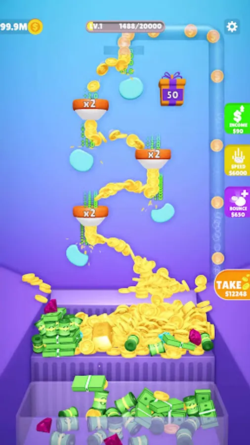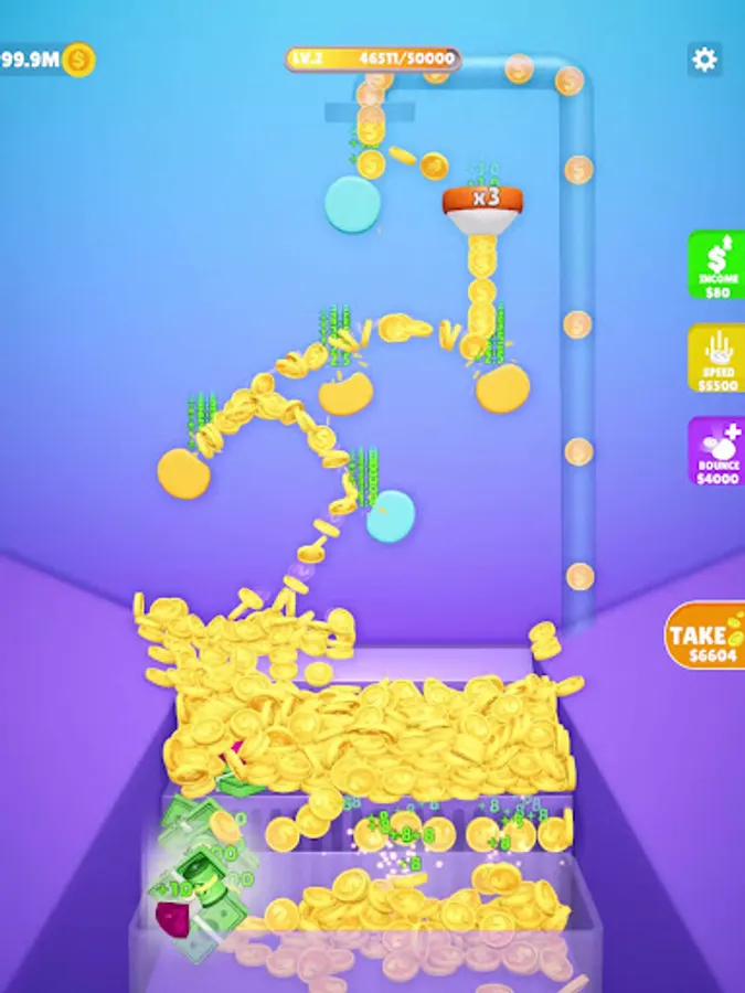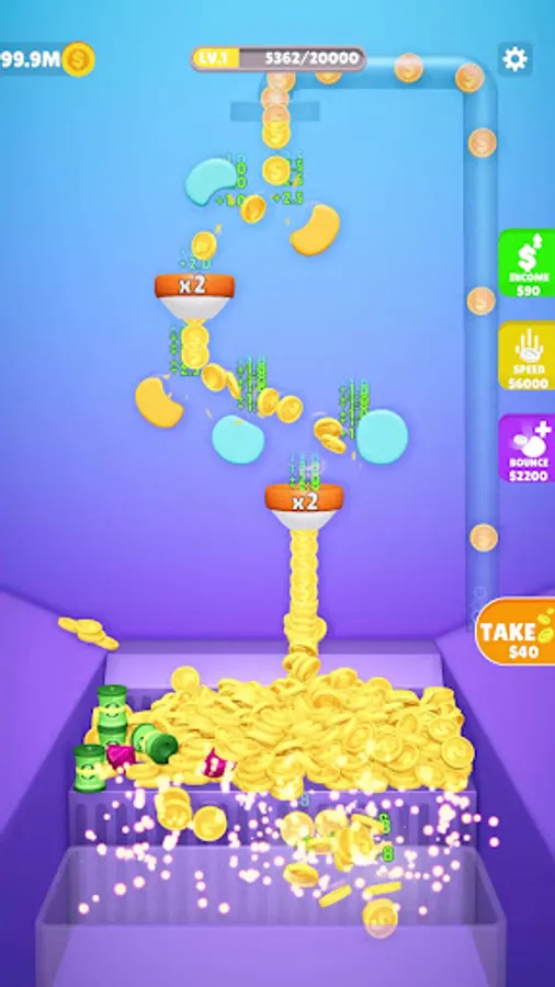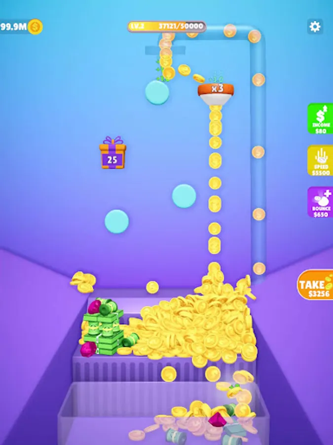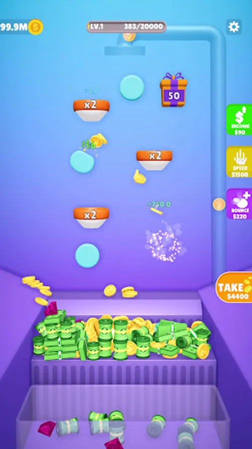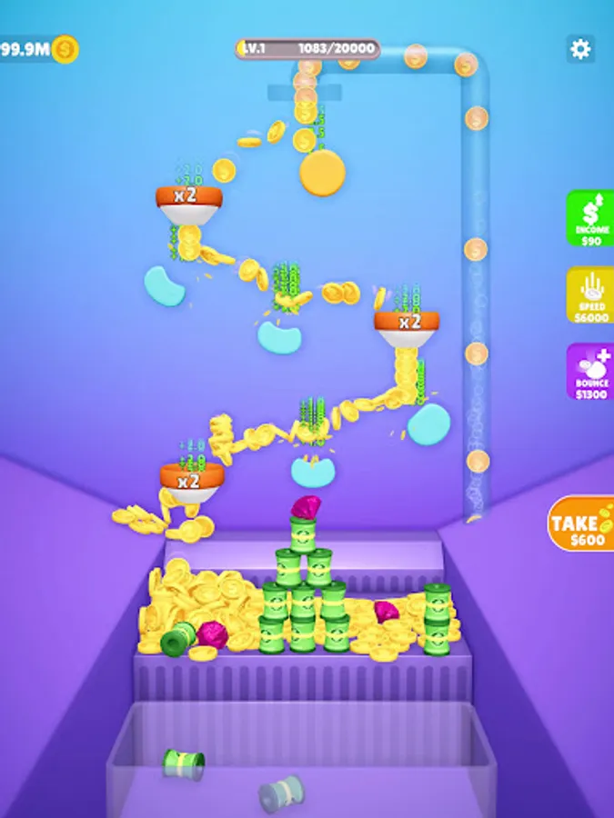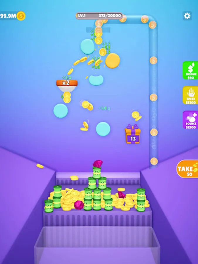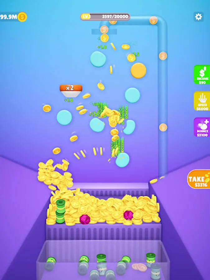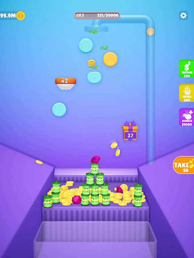 Claim your coins to add more bouncers, increase speed, and level up.