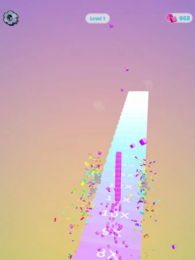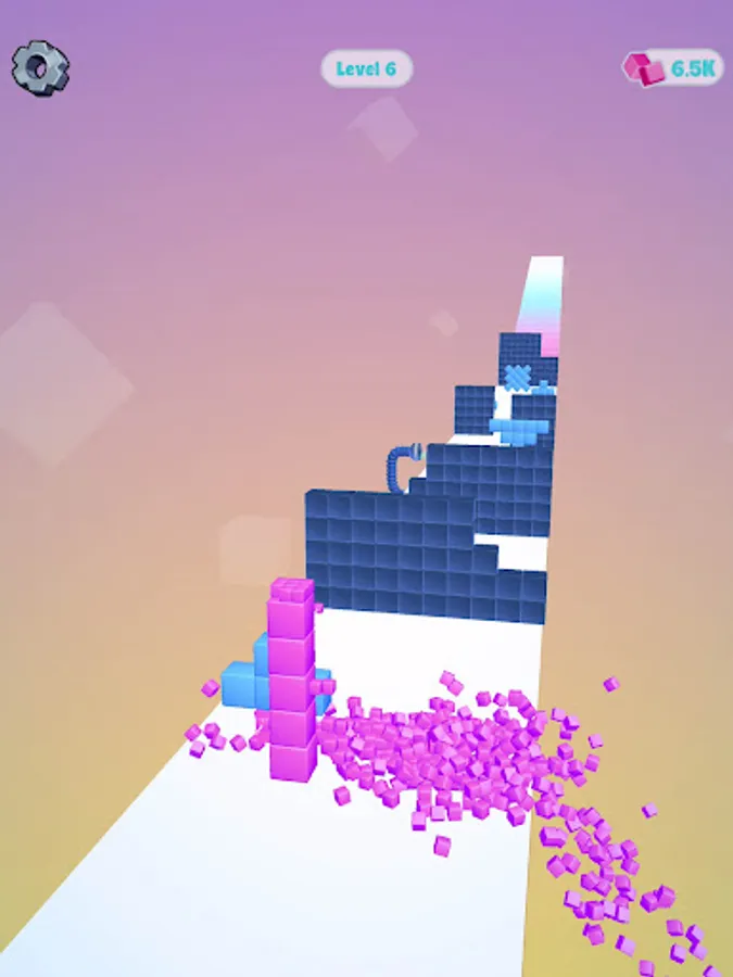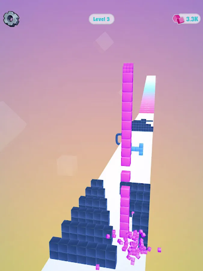 Take aim and shoot to demolish each cube stack moving towards you. Collect the smaller pieces that has crashed and stack them to increase your height. The longer you get, the more you earn!