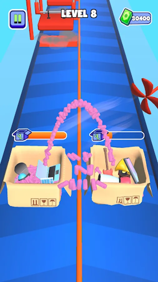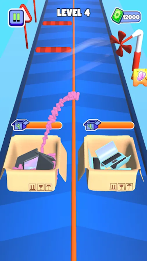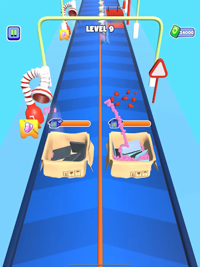 Transfer peanuts from one box to another, keep the balance and minimize the damage. Kicky delivery guy, speed bump and vacuum are only some of the obstacles on your path. Tap and hold to transfer peanuts and reduce the damage on each box!