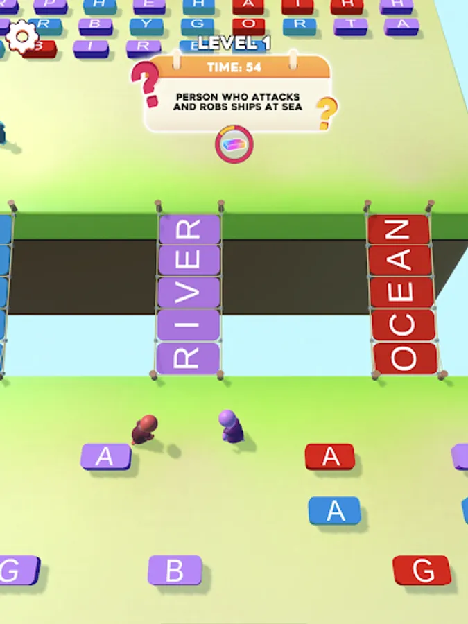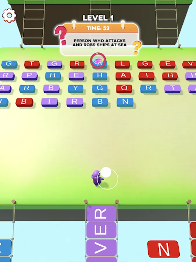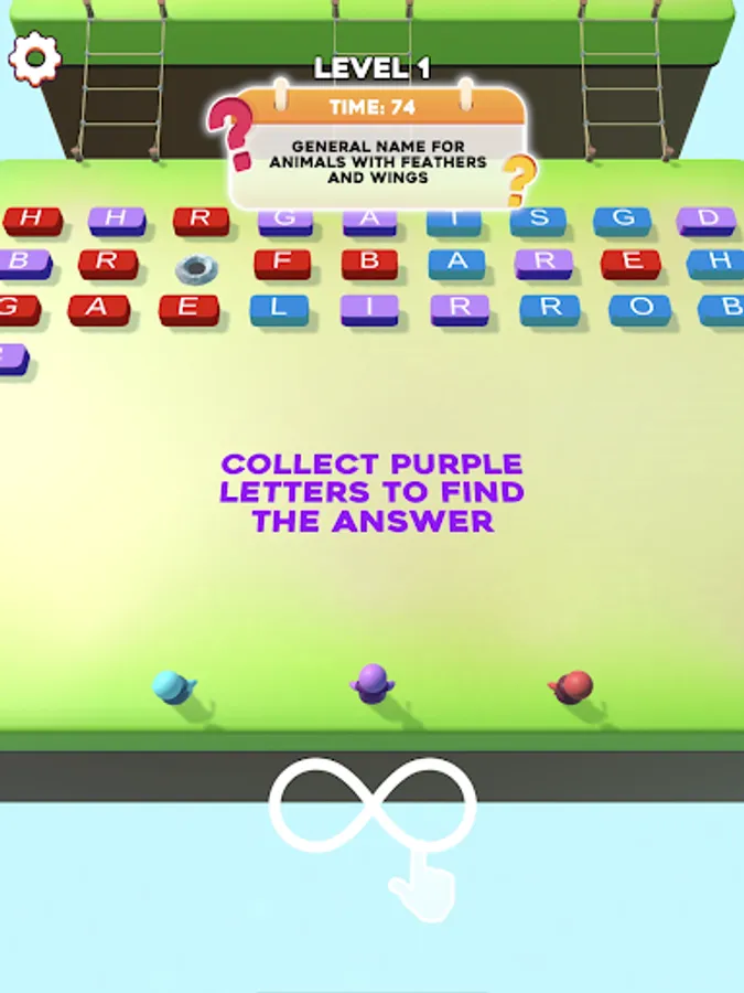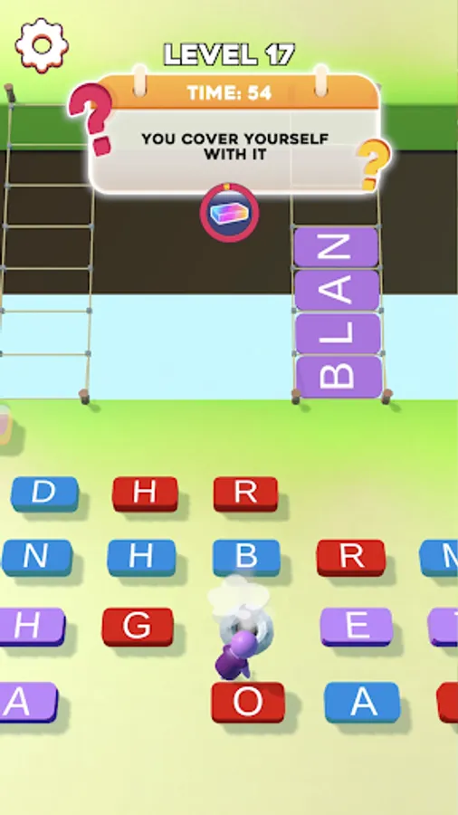 Find the letter bricks you need according to the hint you're given. You must find them quickly before the time runs out!