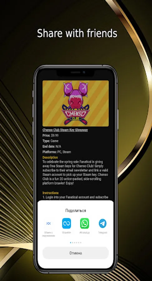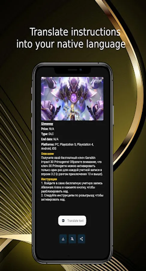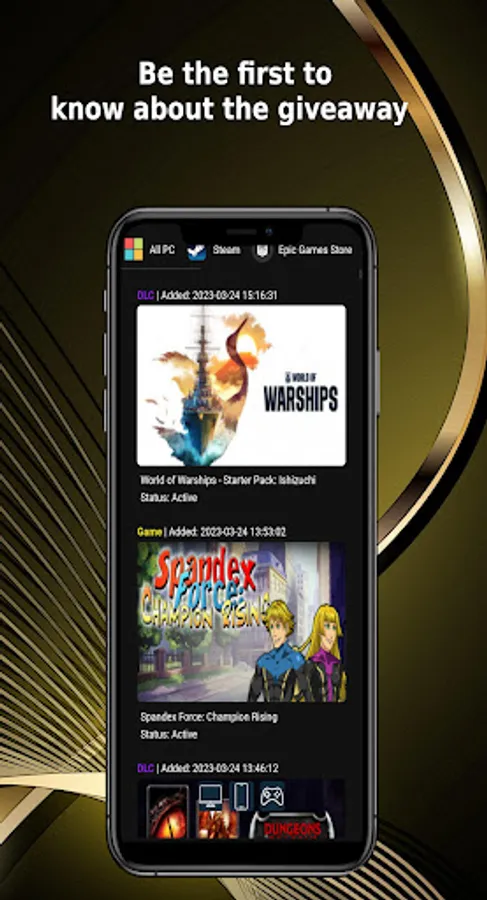 In game stores, distributions of games, dlc and promo codes for different platforms are very often made with a limited period of validity, so you must receive information in time in order to be able to get the desired game for your collection. Games Speaker checks all existing game stores for giveaways such as Steam, Epic Games Store, Ubisoft's Uplay, GoG, EA's Origin and others including console and mobile stores, so you no longer need to do it manually . You just need to go to the application and select a game from the list of the game store you need. Games Speaker notifies you when a new free play begins or when a prize draw ends. Never miss out on free games again!