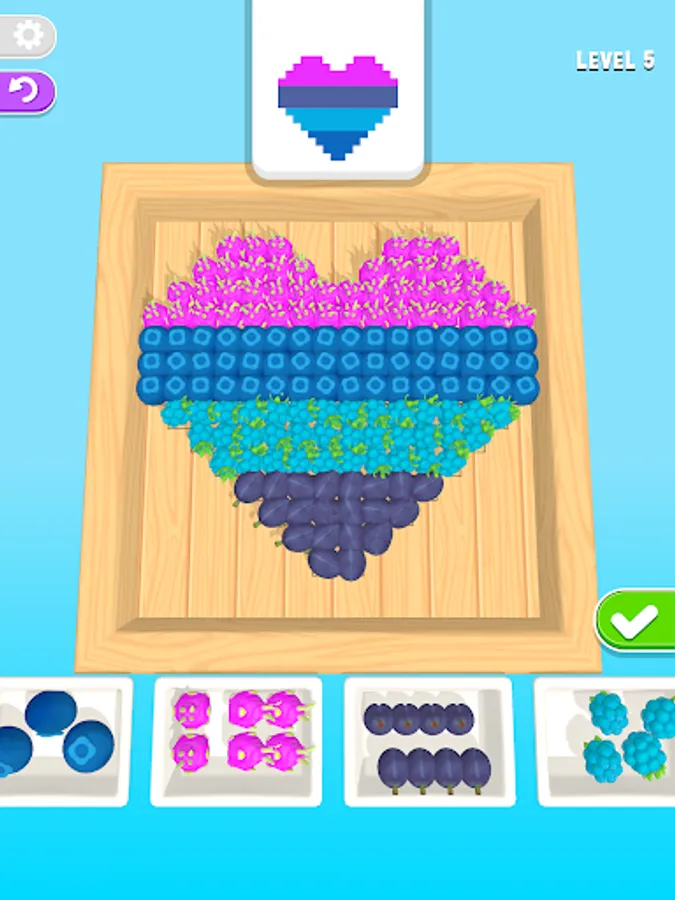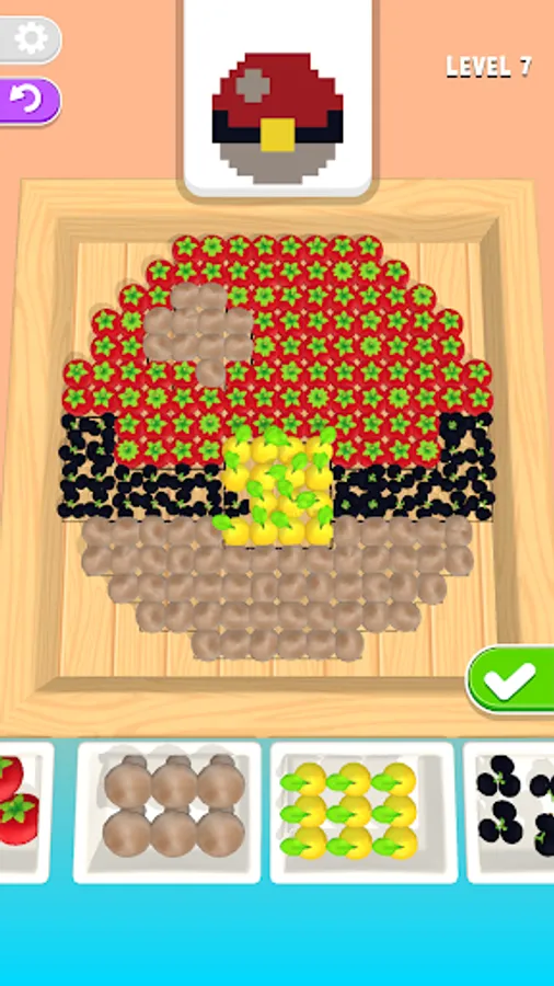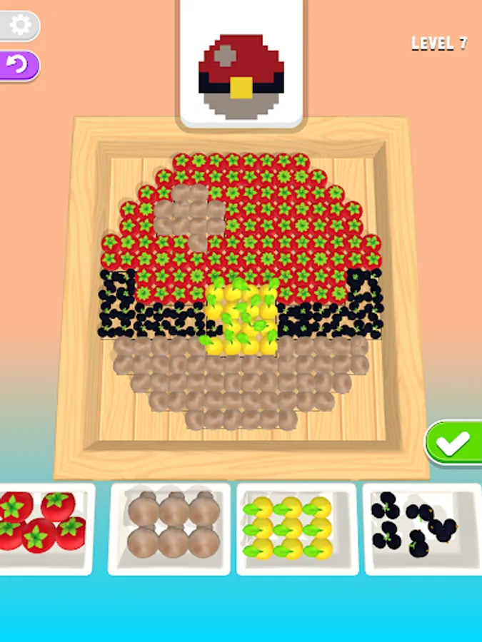 Complete the shapes by correctly placing the vegetables and fruits on the counter.