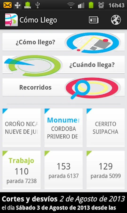 * Display the map of the City of Rosario, graphically view the routes and location of stops, and see when reaches it by simply clicking on the screen.