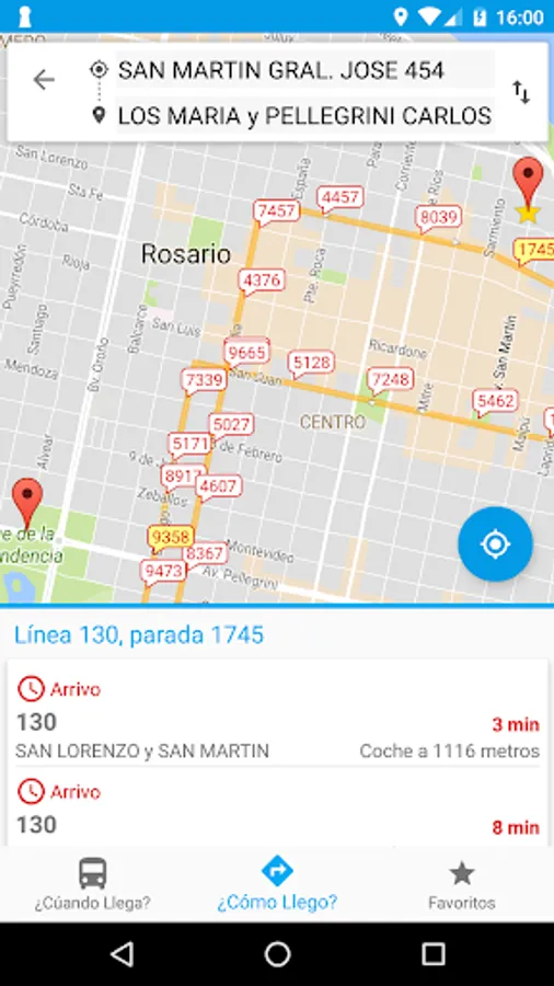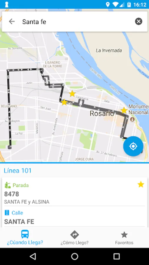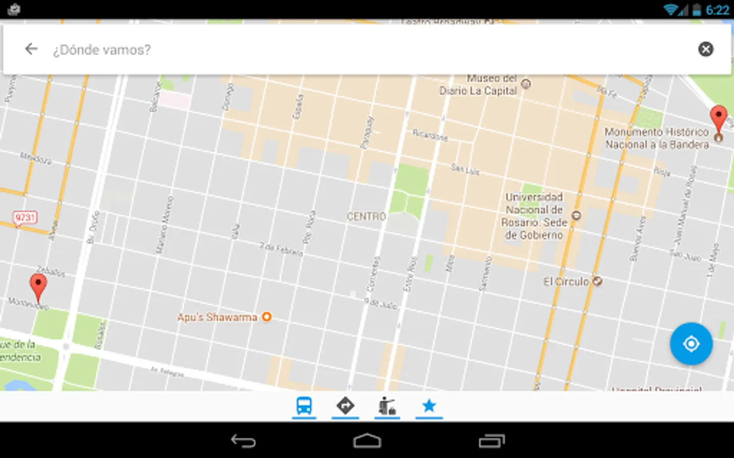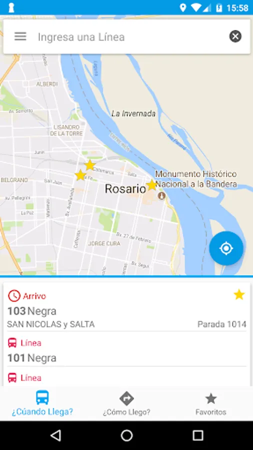 * Display the map of the City of Rosario, graphically view the routes and location of stops, and see when reaches it by simply clicking on the screen.