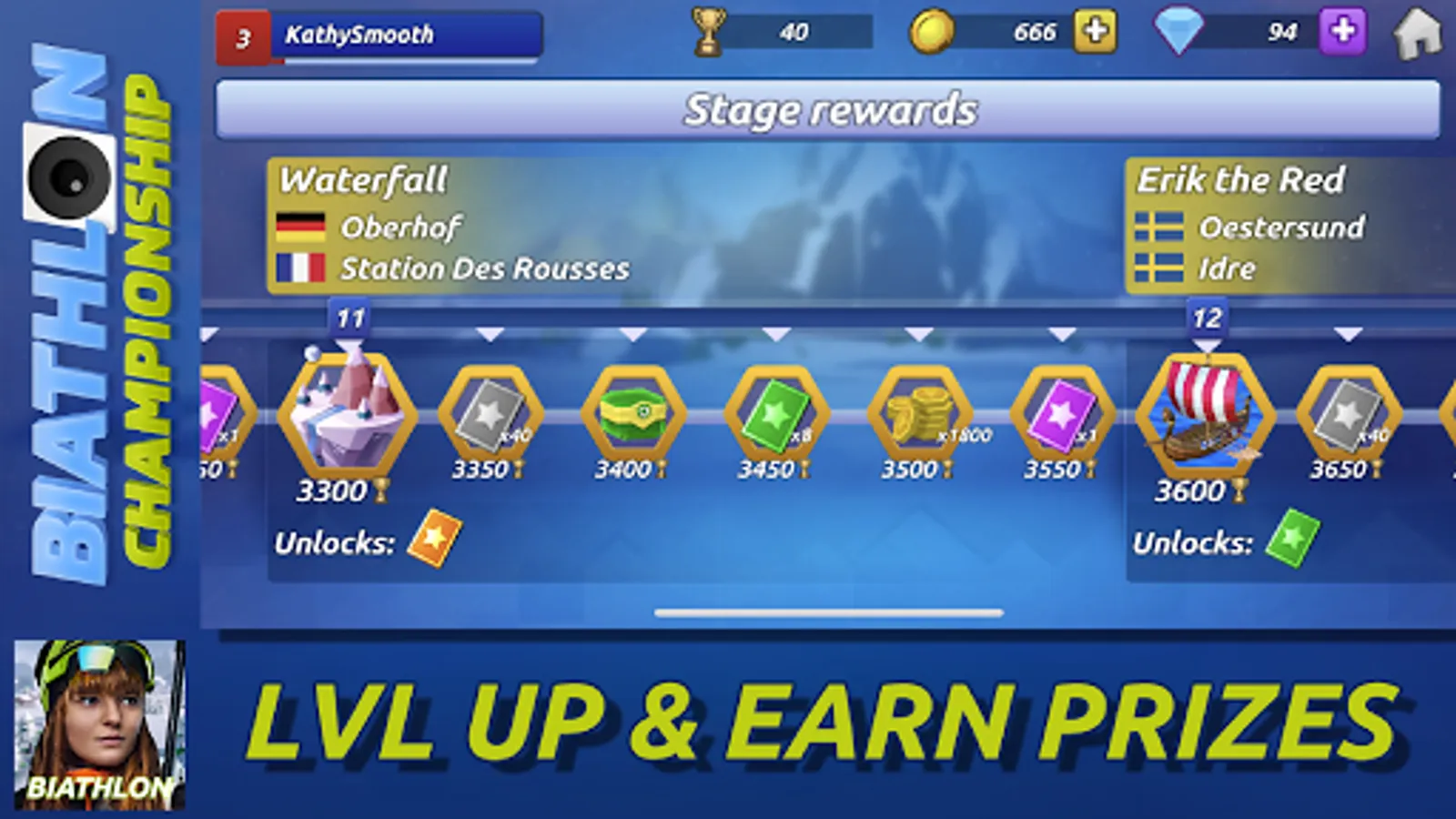 ● Duel players from around the world in biathlon competitions and take their Trophies