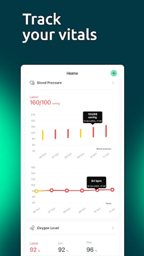Remote patient care app helps to monitor any chronic condition including diabetes, heart disease, cancer, postcovid, hypertension, asthma, pre and post surgery care and others. View your vitals data history and trends and receive personalized insights.