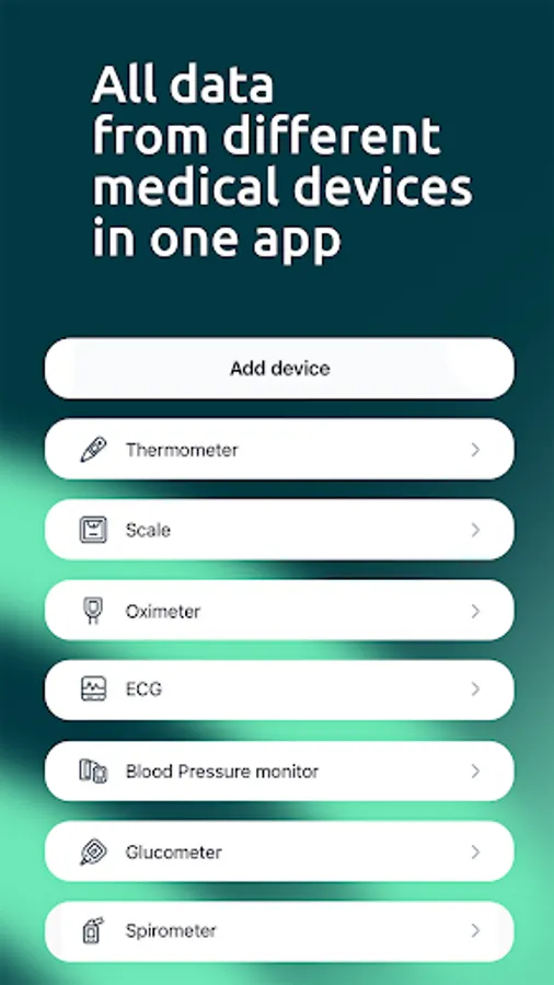 Daily monitoring is a key for successful management of chronic diseases. In fact, studies suggest that remote patient monitoring can significantly reduce mortality by up to 56%. Telemon allow to track heart rate, blood pressure, temperature, blood sugar, spirometry, blood oxygen, weight using any medical device.