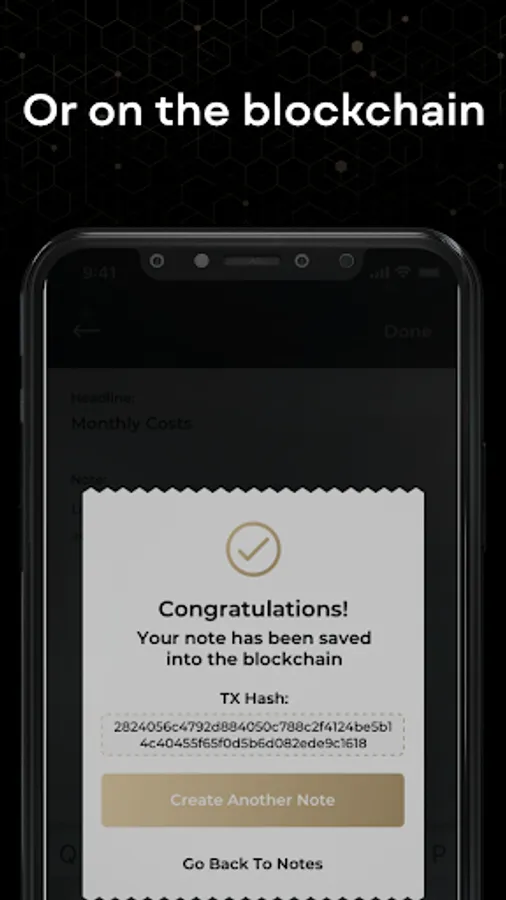 Using G999's latest double-encryption technology, our tool allows the storage of private notes either locally or permanently secured on the blockchain giving the users the extra level of security they need.