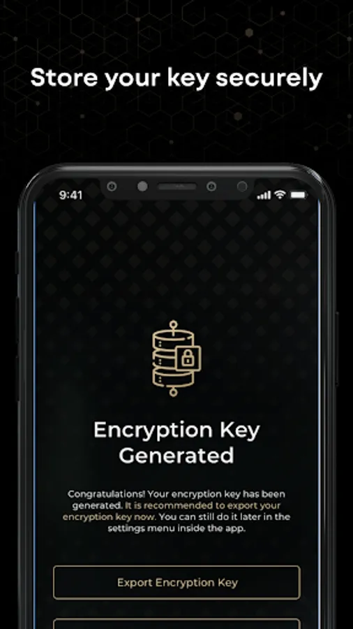 By exporting your unique encryption key to a secure location you can make sure you will always have full control over your private information.