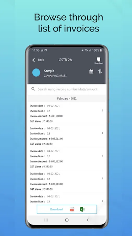 * And most importantly, the user need not wait for 20 minutes to download the GSTR 2A to verify a single supplier. They can instantly verify using this app.