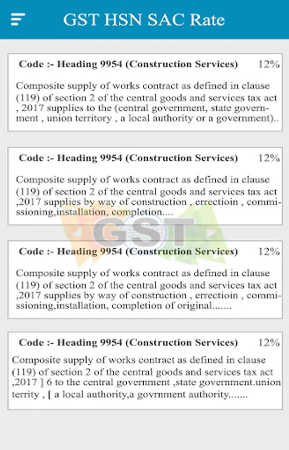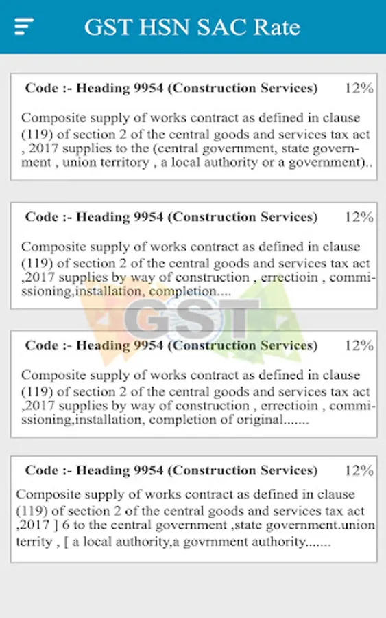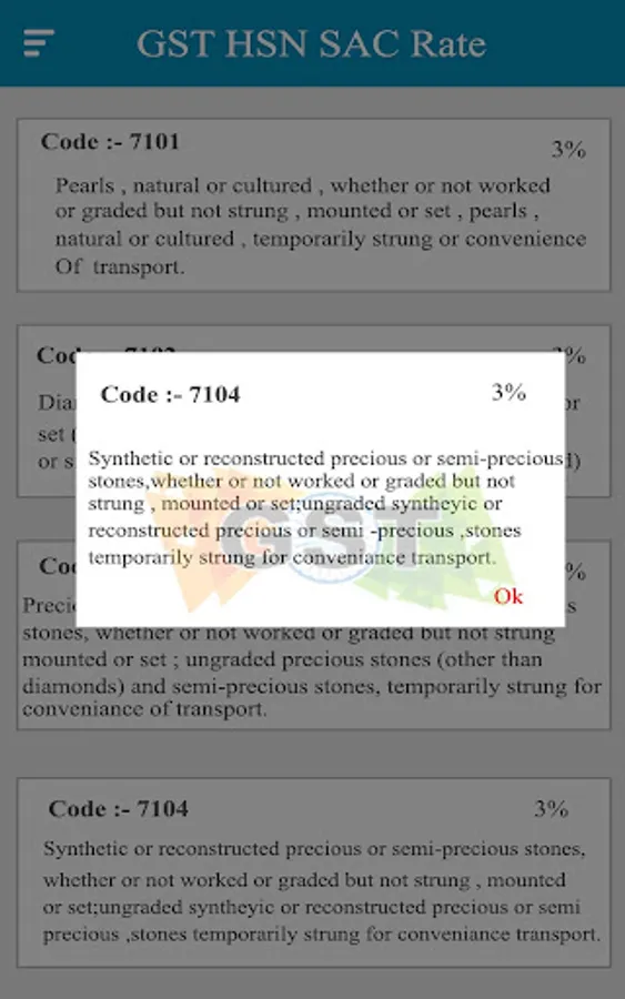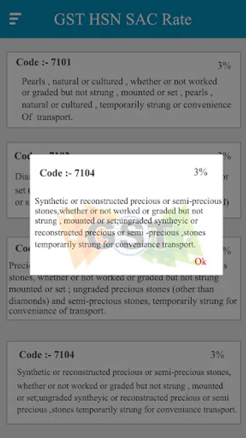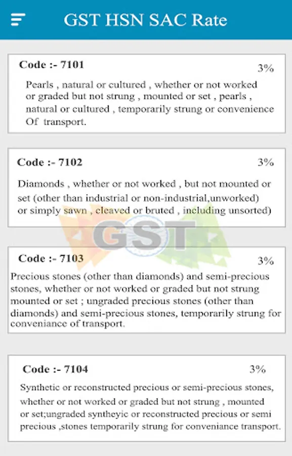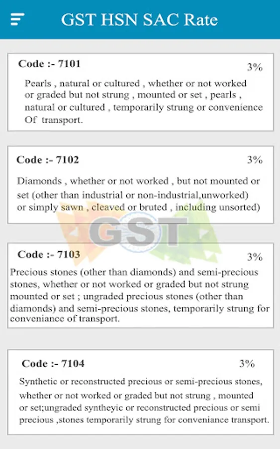 This App provide you Correct HSN codes and Rates of Product given by Government.