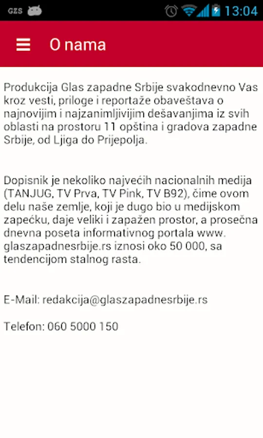 Production Voice western Serbian daily walk you through the news and features about the latest and most interesting developments in all areas of the territory of 11 municipalities and cities of western Serbia, from Ljiga to Prijepolje. The correspondent of several major national media (Tanjug, TV One, TV Pink, TV B92), thus this part of the country, which has long been in the media fringe, gives great and notable area and average daily visits news portal www.glaszapadnesrbije.rs is about 50 000, with a tendency of continuous growth.