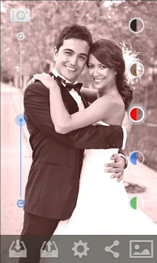Not only can you make classical black and white photos, but also apply little bit of nostalgic touch to them. There are 4 extra monochrome photo effects available in this app that help you design an artistic image: sepia, red-, green- and blue-scale effects. There is also a contrast slider helping to give the perfect touch.