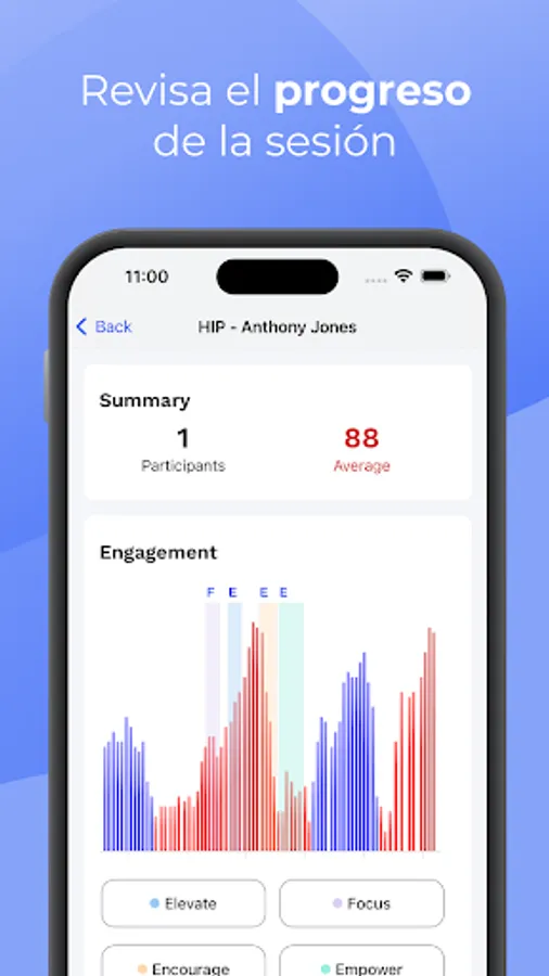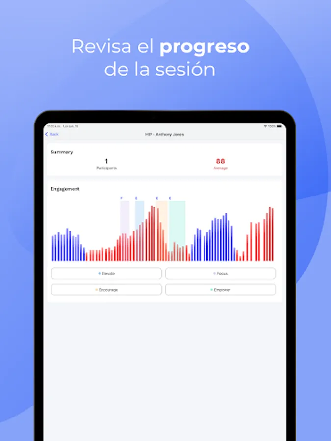 This app was designed so that users can see their active and finished measurement sessions. In the active sessions they will be able to review the progress they have, activating and deactivating moments and reviewing the number of participants and the average attention they have.