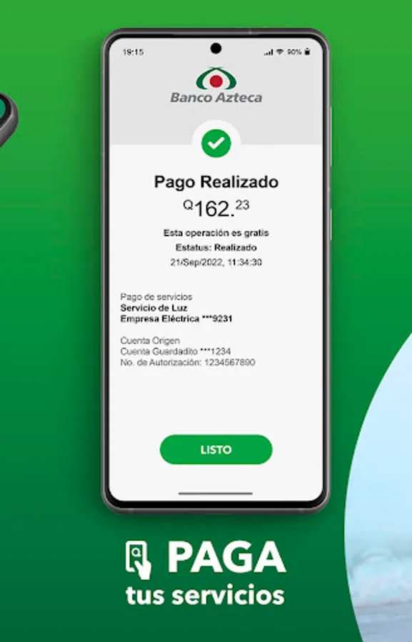 With your Banco Azteca app, pay for the services of ENERGUATE, EEGSA, CLARO post payment, Capillas Señoriales, TELECOMUNIQUE, AMWAY, MAPFRE and DIREKTO easily and in minutes.