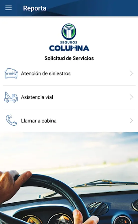 Con esta aplicación los clientes se conectan directamente a la cabina de asistencia de Seguros Columna y podrán solicitar servicios de asistencia y reportar siniestros para las pólizas registradas.