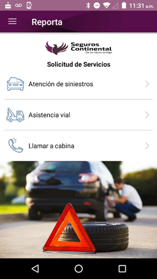 This application is part of a private platform for use by Seguros Continental clients and our employees, designed so that they can report accidents or request assistance services on the road. They must register a valid insurance policy, after which, it appears a menu of services to attend to your emergencies. When it comes to reporting an accident or requesting a service for their vehicle, our clients send their location to our backend, then they locate the closest service provider, they are notified of the service and they are allowed to travel to provide the corresponding help.