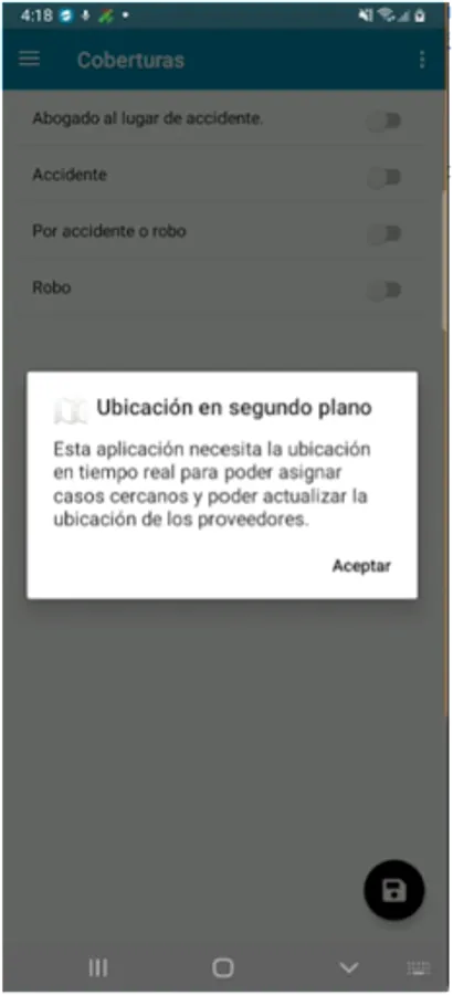 With this application, assistance service providers can receive requests for services by proximity of applicants. They must be registered in the application with the credentials provided by Pacifico Seguros and must agree to share their location in the background. Later they will receive notifications so that they can take the services and attend them.