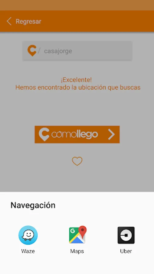Luego en el buscador del App ingresan CASAJORGE, seleccionan su aplicación preferida para rutas (google maps, waze, uber) y no te preocupes pues ellos llegarán exactamente al punto que has creado anteriormente... Así de exacto.