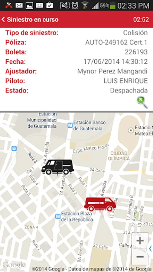 For times of urgency you can report your emergency vehicular collision, theft or request assistance (crane, flat tire, or other services according to your coverage), where the application detects the location of the emergency, you automatically assigned Fitter close and all this you can view it on the map that presents the application.