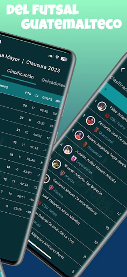 In Futsal502 you can see all the statistics of the Major League and Promotion, such as the calendar, position table, scorers and much more.