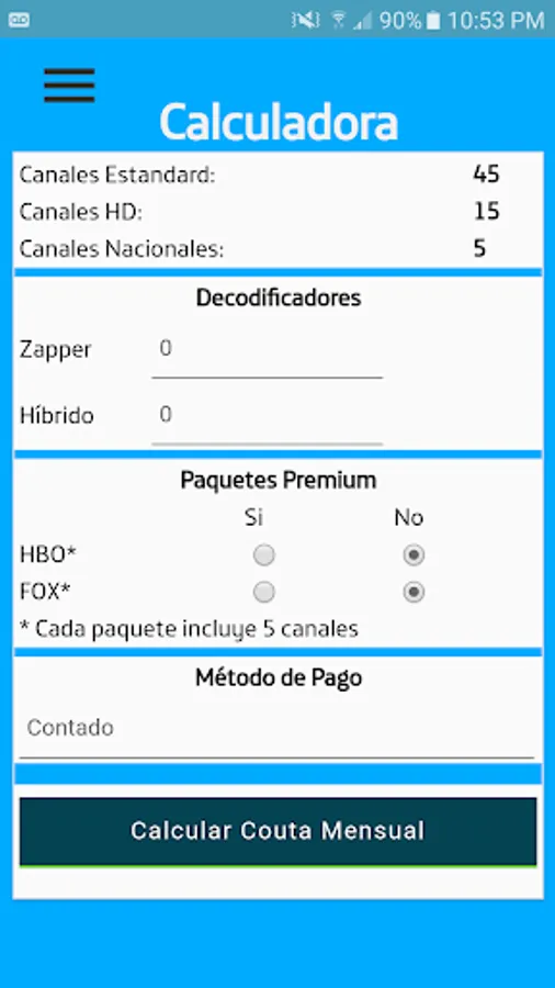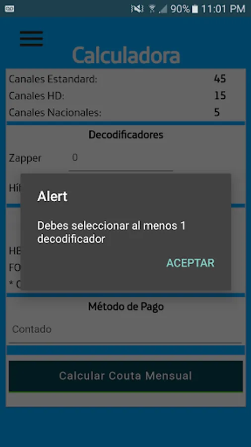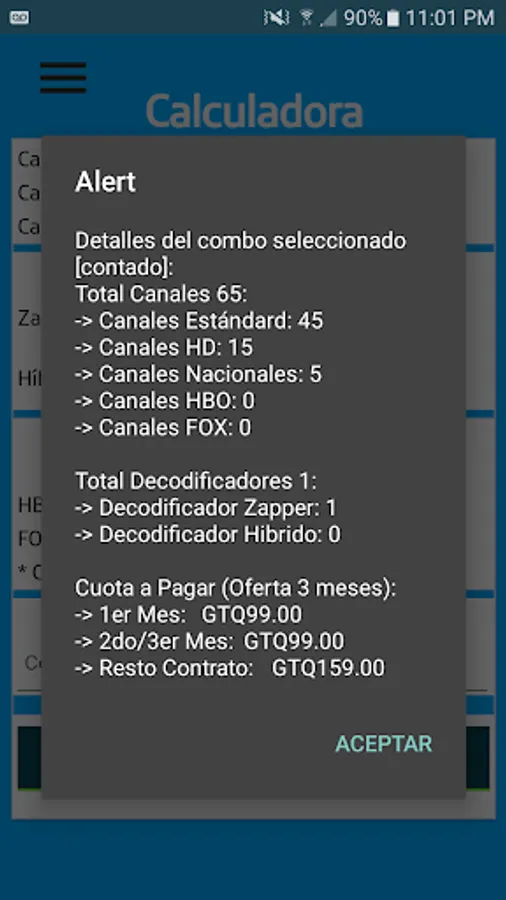 Application designed to help sales force in calculating the plans and fees to pay for DTH television services, including offering the first three months.