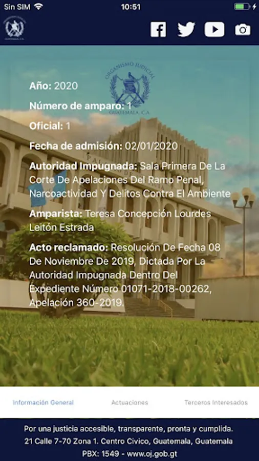 Application that allows access to justice agile and dynamic, electronic information services such as location of courts, validation ballot no criminal, credit alimony, injunctions, hearings, preliminary hearings history, among other services; They are contributing to the strengthening of justice, transparency and modernization in judicial proceedings.