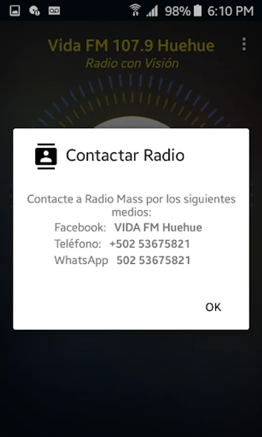 Vida FM Huehuetenango is an online evangelical Christian station live broadcasting on 107.9 in Frequency modulation. Carrying words of blessing through preaching, music and messages. And through our social networks, especially our facebook page with content that edifies the Christian people.