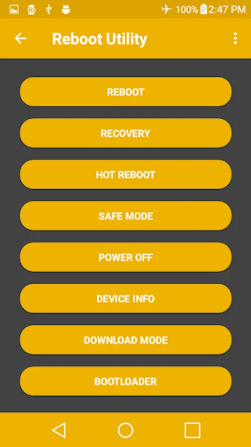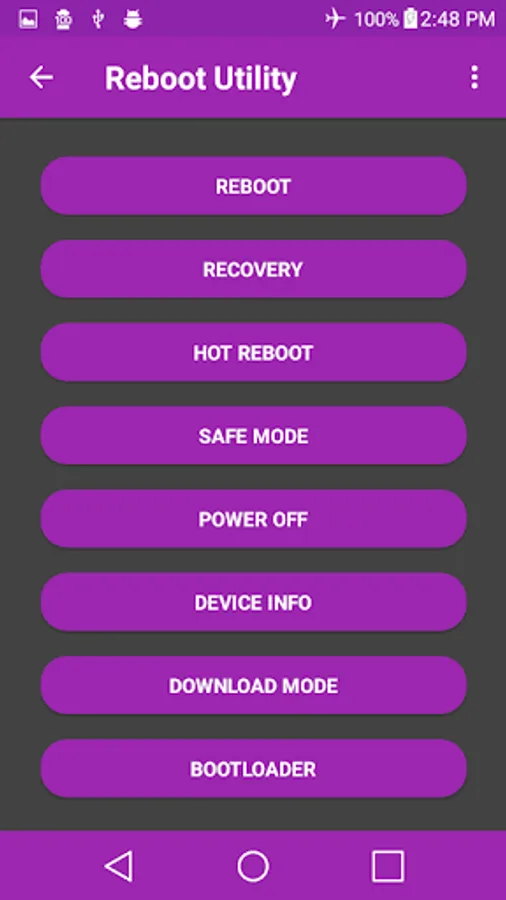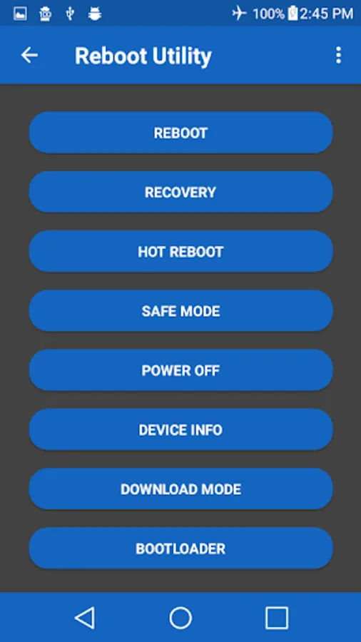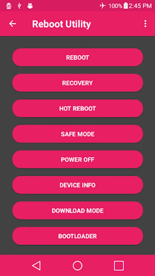 This is a simple reboot utility app to manage your rebooting options on "rooted" phones. It also has 9 themes and 4 backgrounds to choose from.