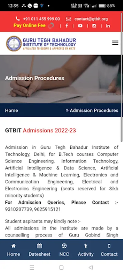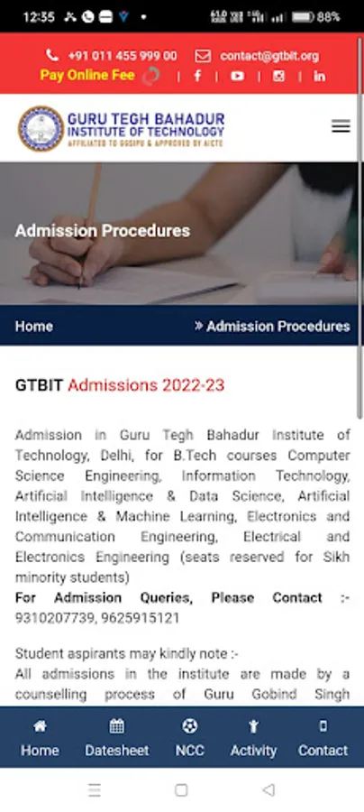 Guru Tegh Bahadur Institute of Technology (GTBIT) was established in 1999 by Delhi Sikh Gurdwara Management Committee (DSGMC), which is running a host of educational institutes, besides carrying out large number of religious and social activities. GTBIT is a degree level technical institute, approved by AICTE and affiliated to Guru Gobind Singh Indraprastha University, Delhi. GGSIPU was established by Government of NCT of Delhi under provisions of Guru Gobind Singh University Act, 1998 read with its Amendment in 1999. It is an affiliating and teaching University. It is recognised by University Grant Commission, India under section 12B of UGC Act. It has also been accredited " A Grade" by NAAC. GTBIT has a sprawling campus and is centrally located in Rajouri Garden, New Delhi. The institute has five spacious buildings and state-of-the-art laboratories. Students of GTBIT have the best of facilities, a conducive environment for studies and a dedicated faculty to guide them and lead them to success.