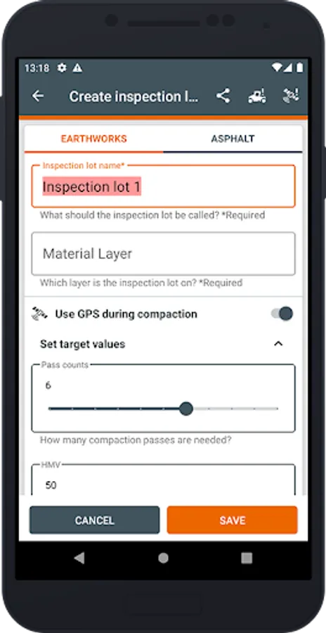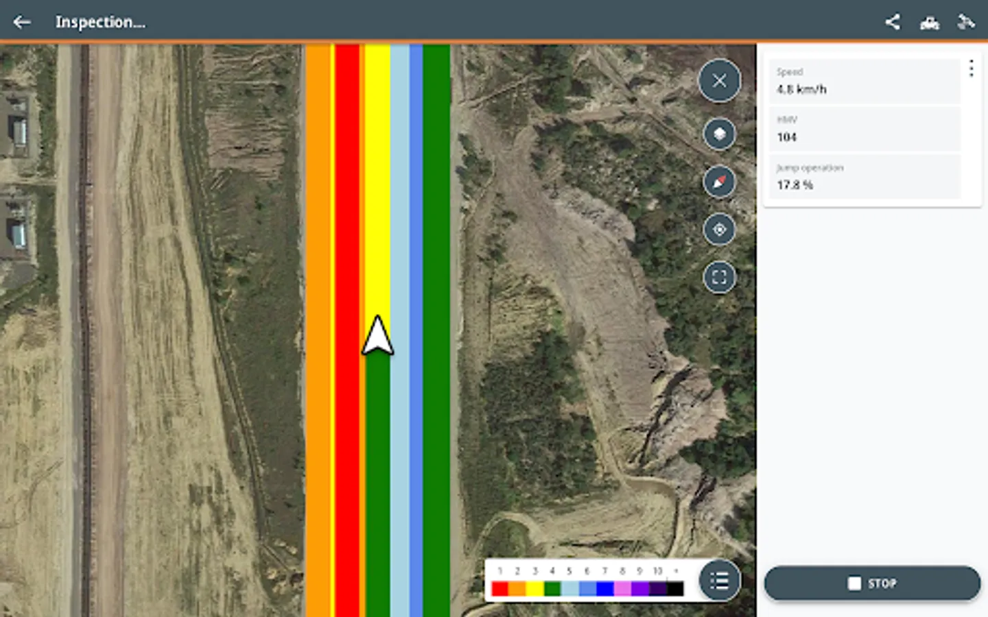 During compaction (GPS-based), the app records speed, compaction value HMV, frequency, amplitude and the amount of jump operation. The temperature of the asphalt is also recorded anytime when using tandem rollers. For compaction in earthworks, an evaluation can also be generated that shows the change in compaction values.