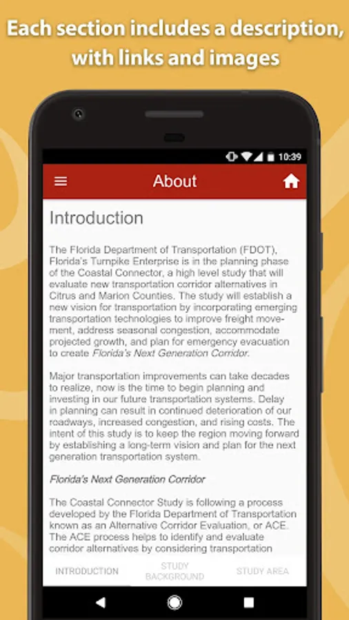 The Florida’s Turnpike Projects app provides a summary of the current major projects being developed by Florida’s Turnpike Enterprise. Each project summary will include:
